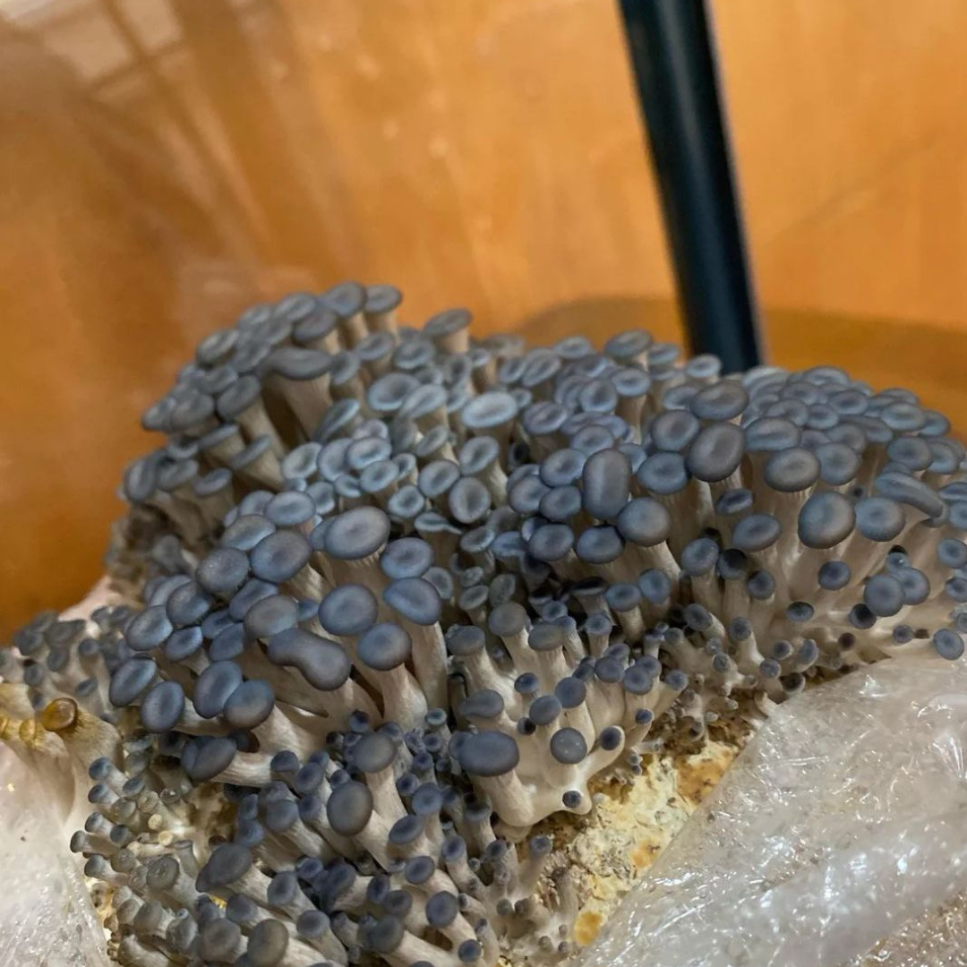 ¡Maravíllate con el espectáculo visual de la Ostra Azul! Nuestro kit incluye sustrato 100% colonizado con Pleurotus ostreatus var. ‘Blue’, listo para producir sus increíbles setas de color azul grisáceo. Una experiencia de cultivo única y fascinante.